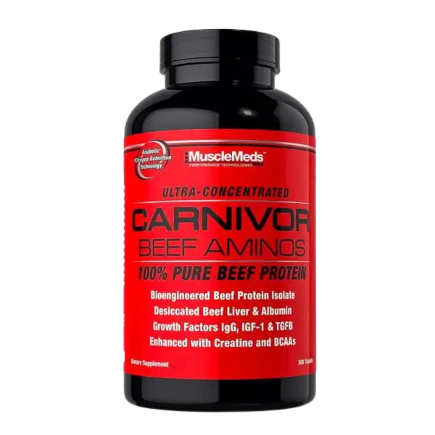 Carnivor Beef Aminos هو مكمل فريد من MuscleMeds يحتوي على أحماض أمينية مركزة من لحم بقري نقي، مدعوم بـ BCAA، فيتامين B6، وC. مثالي لبناء العضلات دون دهون أو كوليسترول.