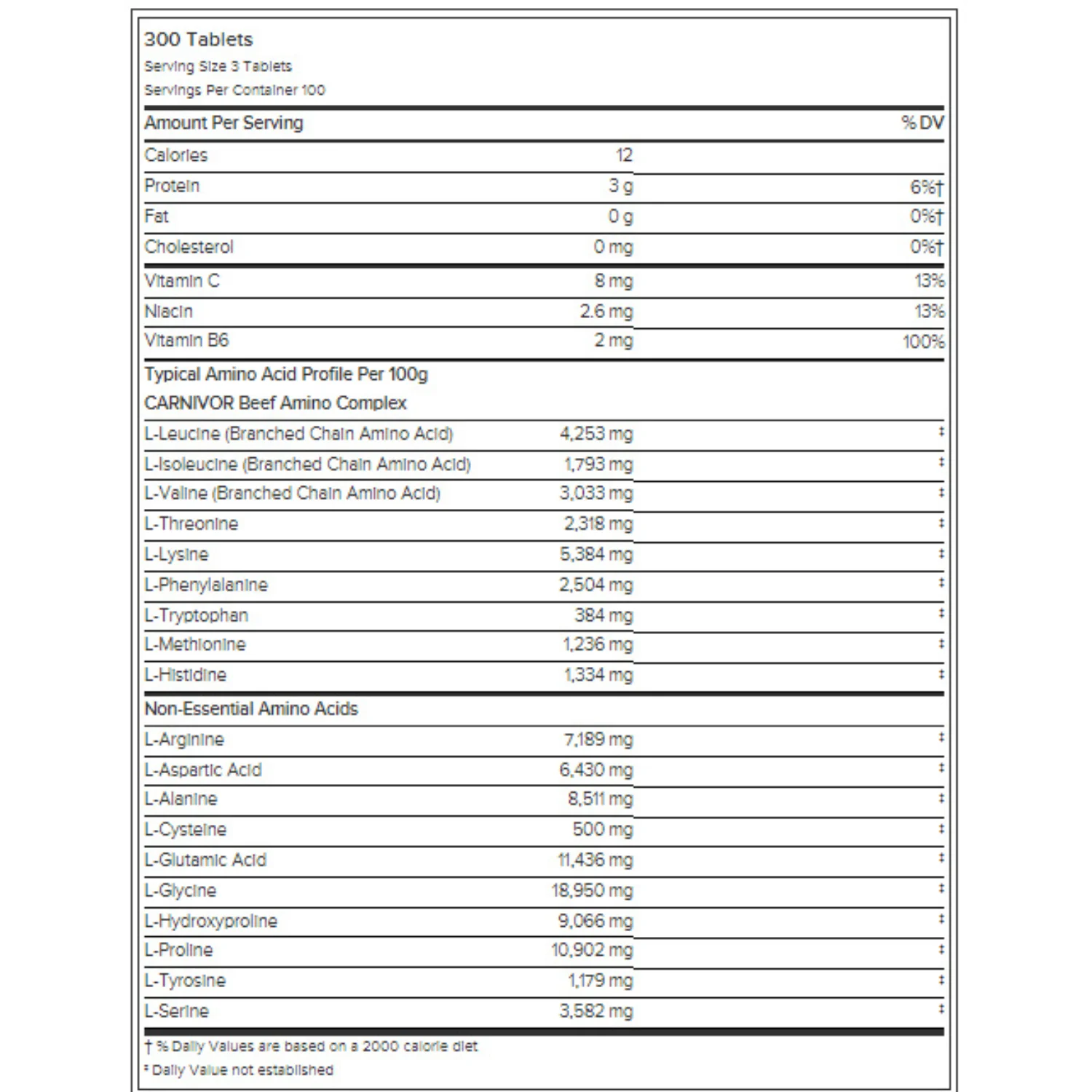 Carnivor Beef Aminos, 100% Pure Beef Protein, 300 Tablets